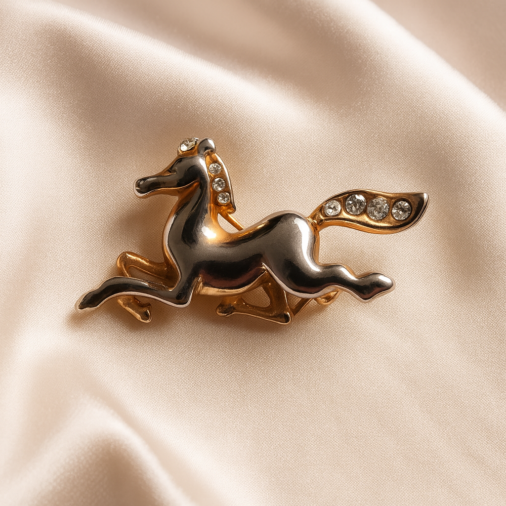 J'avais dix ans, et c'est ma grand-mère qui me l'a offerte. Un cheval discret, mais chargé d'une tendresse infinie. Elle me disait souvent qu'une broche n'est pas qu'un accessoire : c'est une façon de raconter qui l'on est, sans avoir besoin de parler.